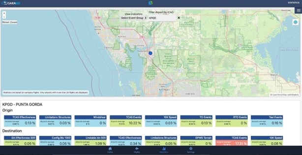 (Below) You can filter by a specific airport to see the airport specific event average. In the screenshot example, TCAS events are highest risk in PGD at 17.31%.