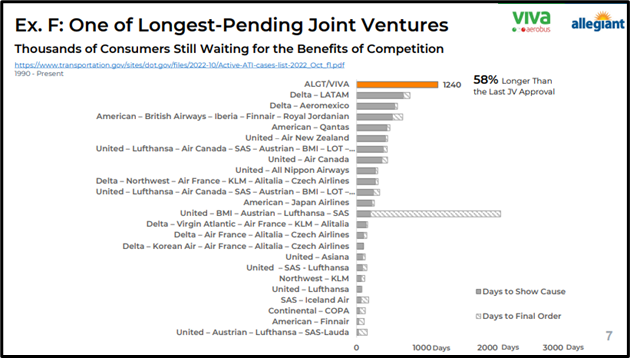 It should come as no surprise that the IBT has written in opposition to the Viva Joint Venture since our U.S.-based aircrews have no guarantee of any portion of the block hours of this agreement, and management has made it clear that they are seeking no changes to our current scope language. In Allegiant’s response to the IBT’s filing, they lament the fact that they have been waiting “58% longer” for approval than the last Joint Venture application. See their language below: